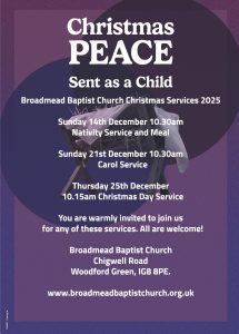 Broadmead Baptist Church meets at our church building at Chigwell Rd, Woodford Bridge. We are a family of different nationalities and cultures in the London Borough of Redbridge seeking to love God, love people and share Jesus with humility and compassion. Morning worship is every Sunday at 10.30 – 12.00pm. You are very welcome to drop in, share and learn from each other, listen to a talk from the Bible and finish with a coffee and light refreshments. We also offer free car parking to visitors, which can be found through the gates beside our site. We are part of the Baptist Union of Great Britain, London Baptist Association and Evangelical Alliance.